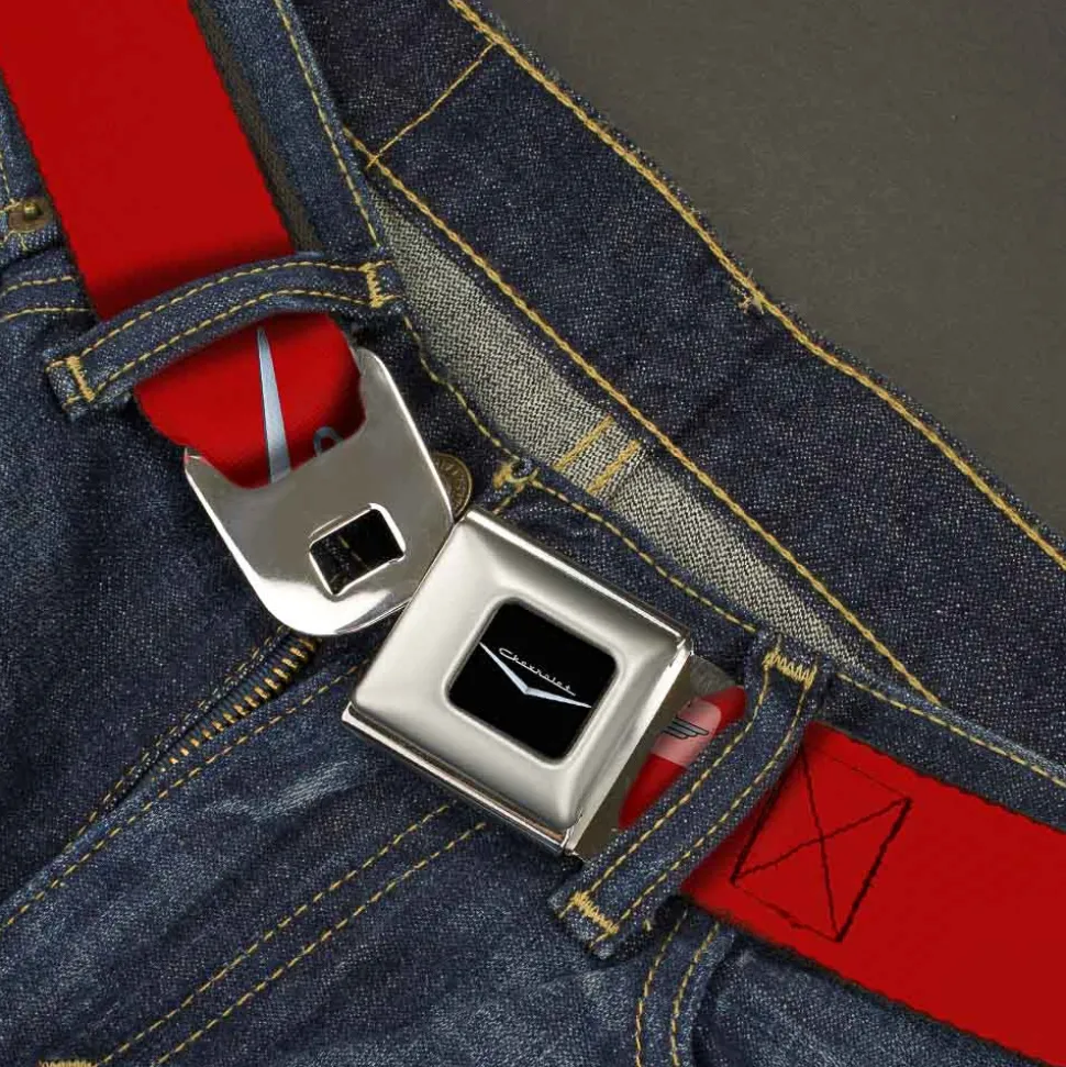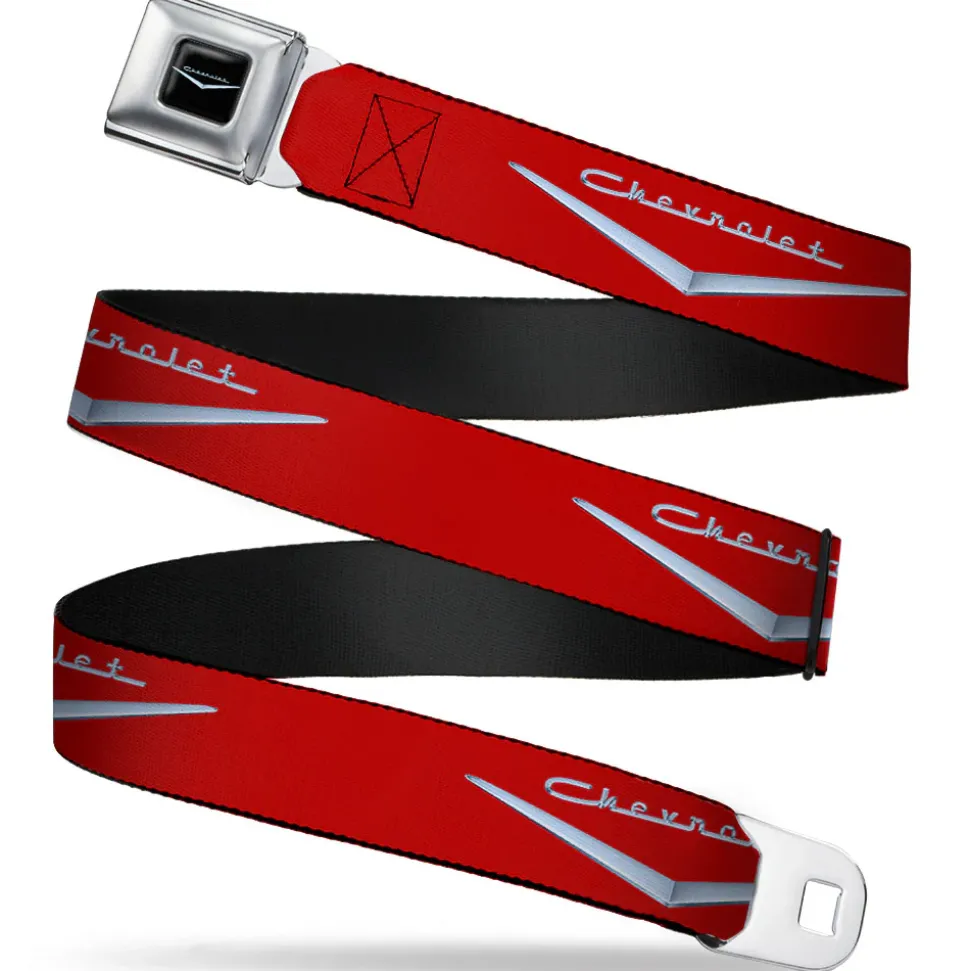 1955-57 CHEVROLET V Emblem Full Color Black Silver Seatbelt Belt – 1955-57 CHEVROLET V Emblem Red/Silver Webbing