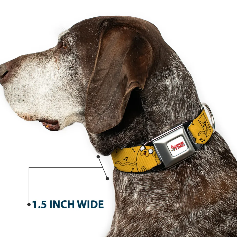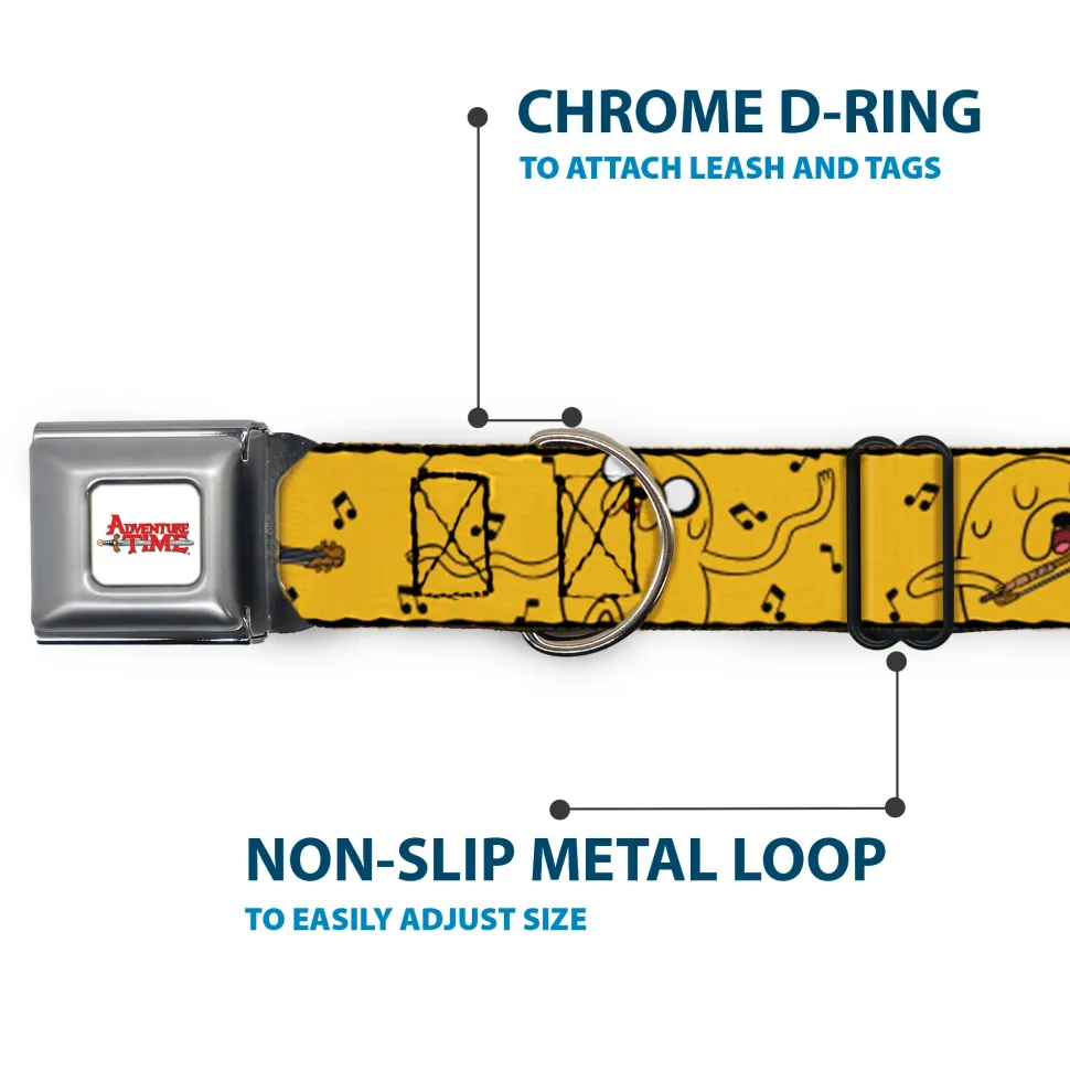 ADVENTURE TIME Title Logo Full Color White Seatbelt Buckle Collar – Adventure Time Jake Dancing and Violin Poses Yellow
