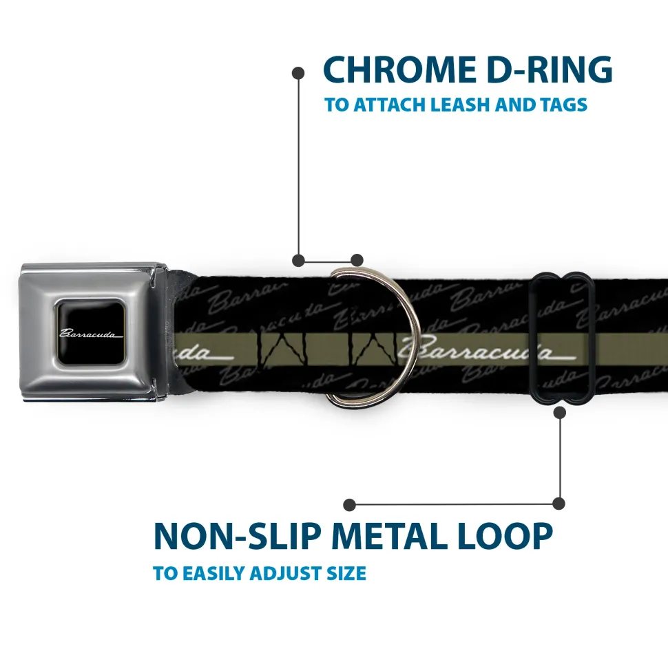 BARRACUDA Script Logo Full Color Black/White Seatbelt Buckle Collar – BARRACUDA Script Stripe/Monogram Black/Gray/Olive/Silver