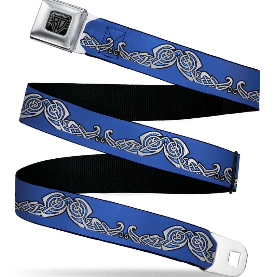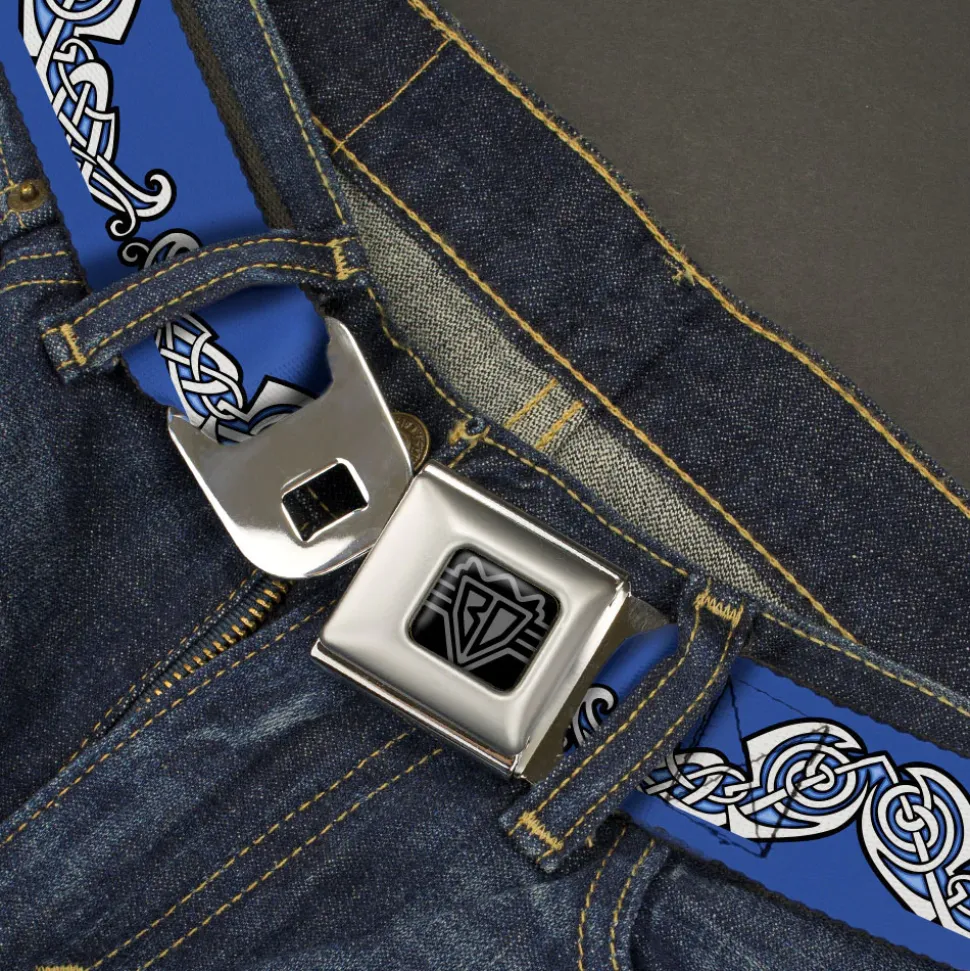 BD Wings Logo CLOSE-UP Black/Silver Seatbelt Belt – Celtic Knot4 Blues/Black/White Webbing