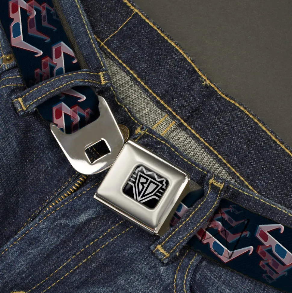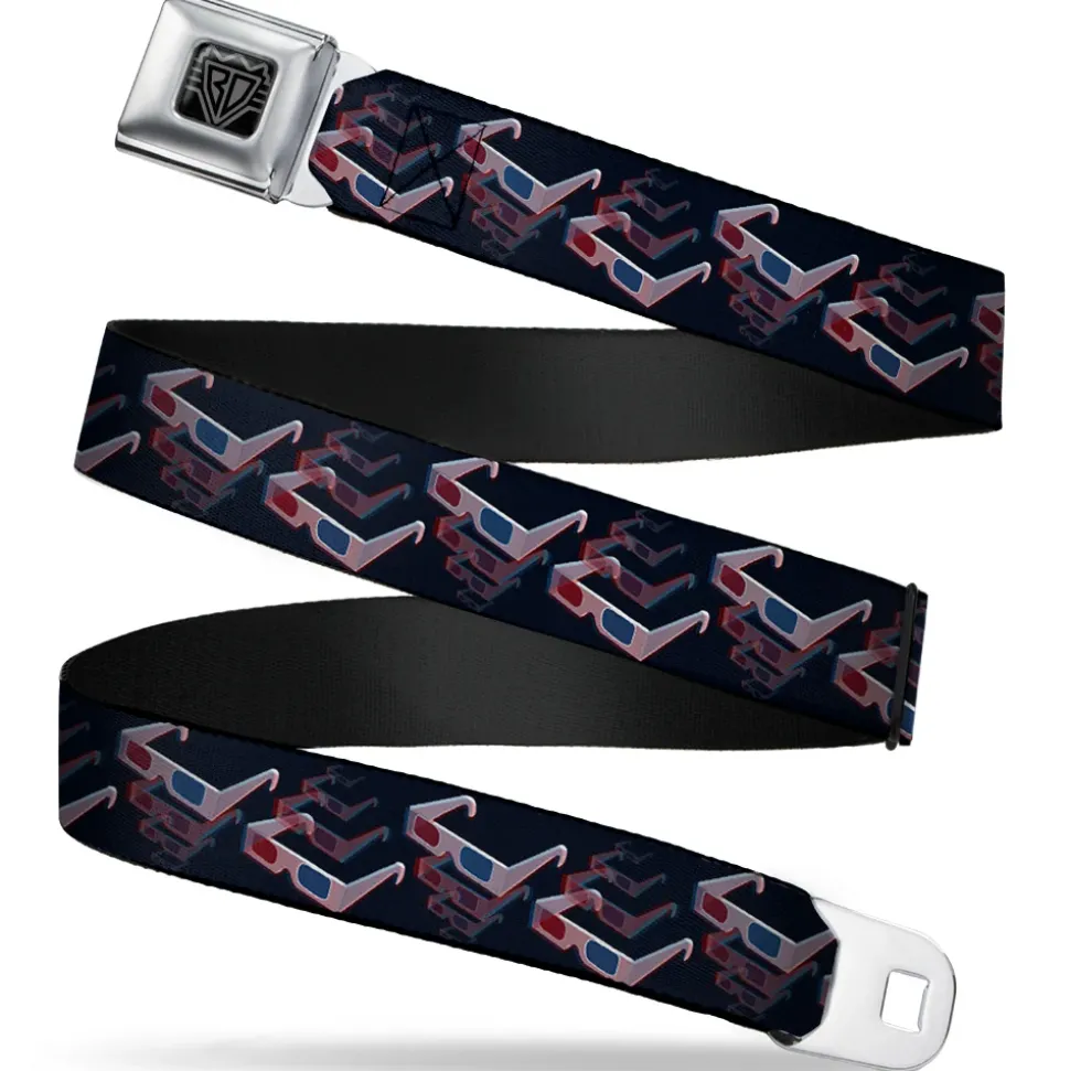 BD Wings Logo CLOSE-UP Full Color Black Silver Seatbelt Belt – 3-D Glasses Black Webbing