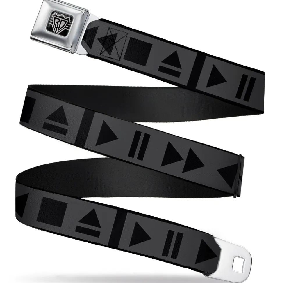 BD Wings Logo CLOSE-UP Full Color Black Silver Seatbelt Belt – Control Buttons Black/Gray Webbing