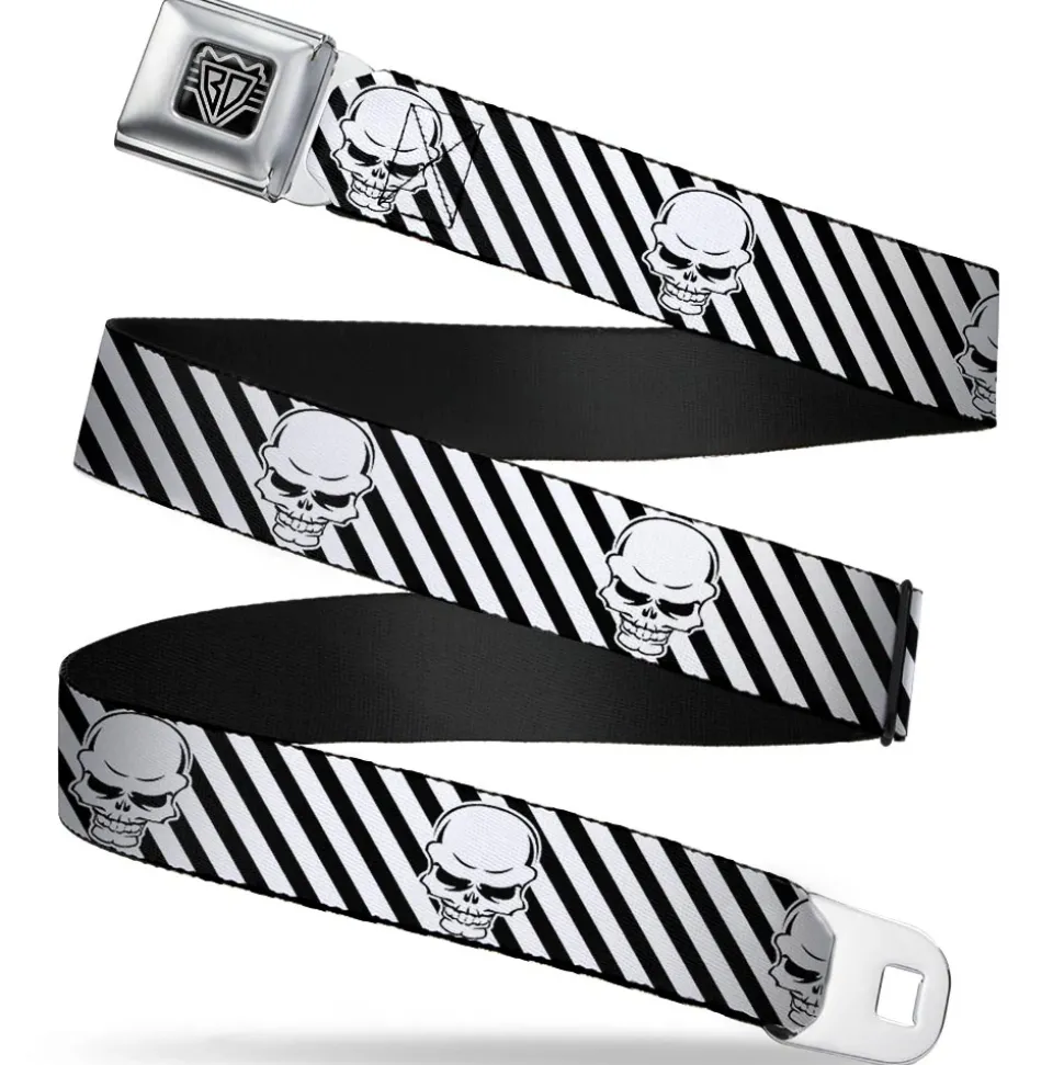 BD Wings Logo CLOSE-UP Full Color Black Silver Seatbelt Belt – Metal Skull Black/White Webbing