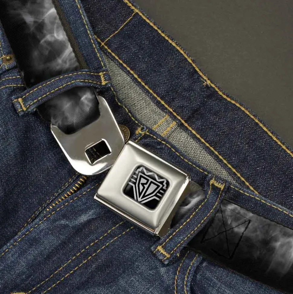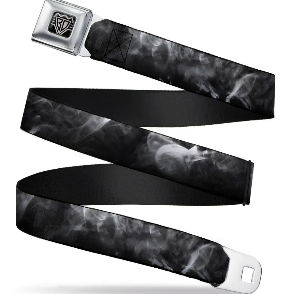 BD Wings Logo CLOSE-UP Full Color Black Silver Seatbelt Belt – Smoke Black/Grays Webbing