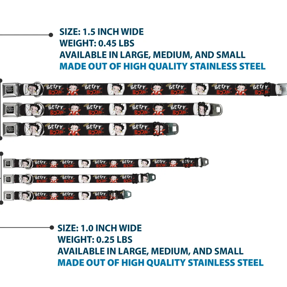 BETTY BOOP Text Heart Logo Full Color Black/White Seatbelt Buckle Collar – BETTY BOOP Angel and Devil Poses with Text Black/White/Red