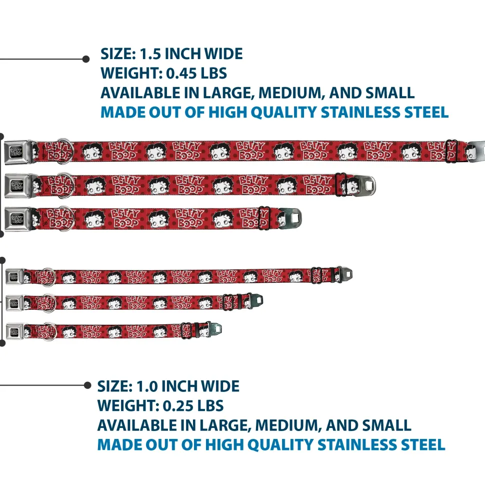 Your dog will be the talk of the town when people notice they’re wearing this awesome SeatBelt Dog Collar! Made from high-density polyester and durable steel components, this collar is built to last. It features beautiful vibrant artwork. The buckle is a miniature authentic SeatBelt Buckle, so you press the center button to release the clasp. This product is assembled in the USA by Buckle-Down Inc. and officially licensed by Fleischer Studios, Inc.