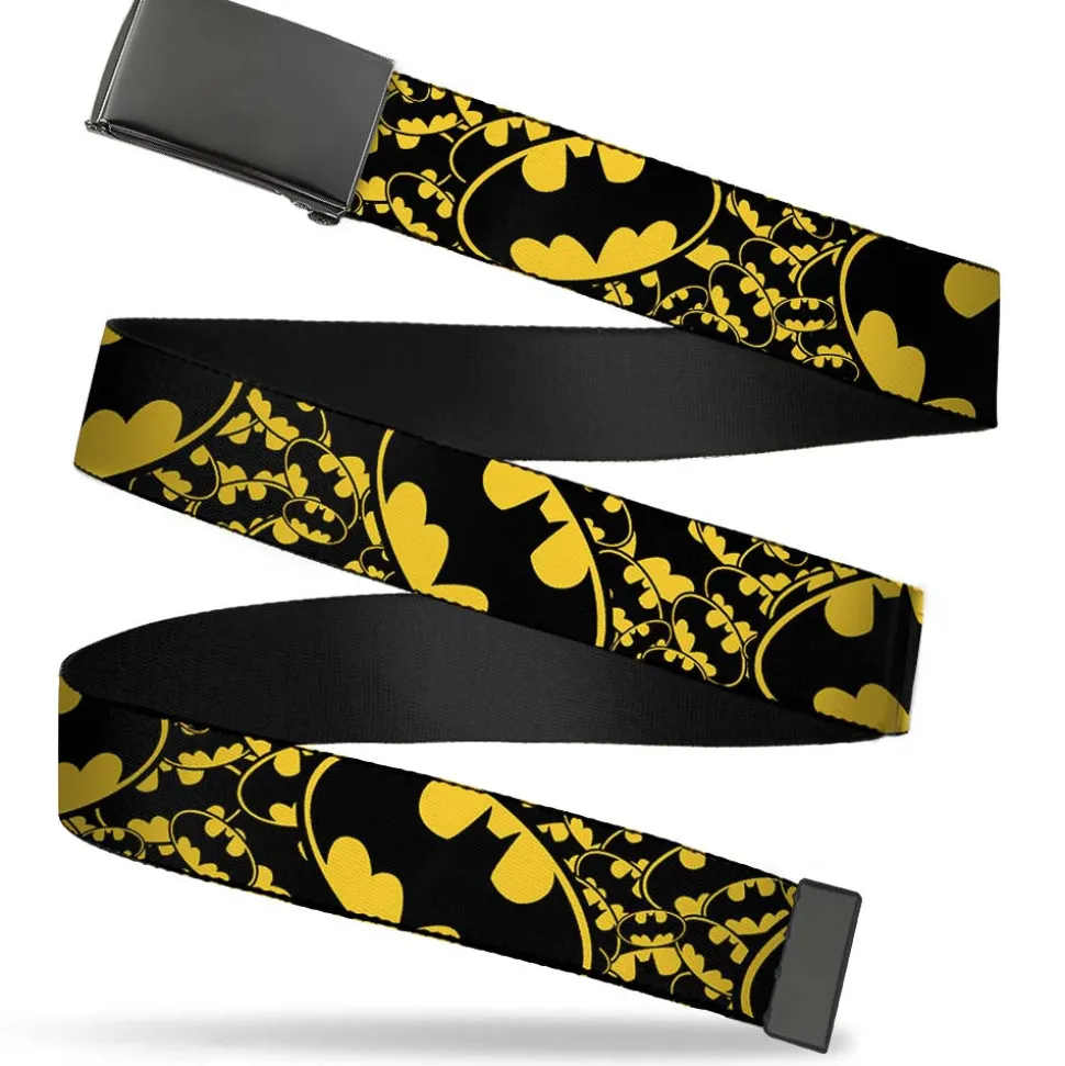 Black Buckle Web Belt – Bat Signals Stacked w/CLOSE-UP Yellow/Black Webbing