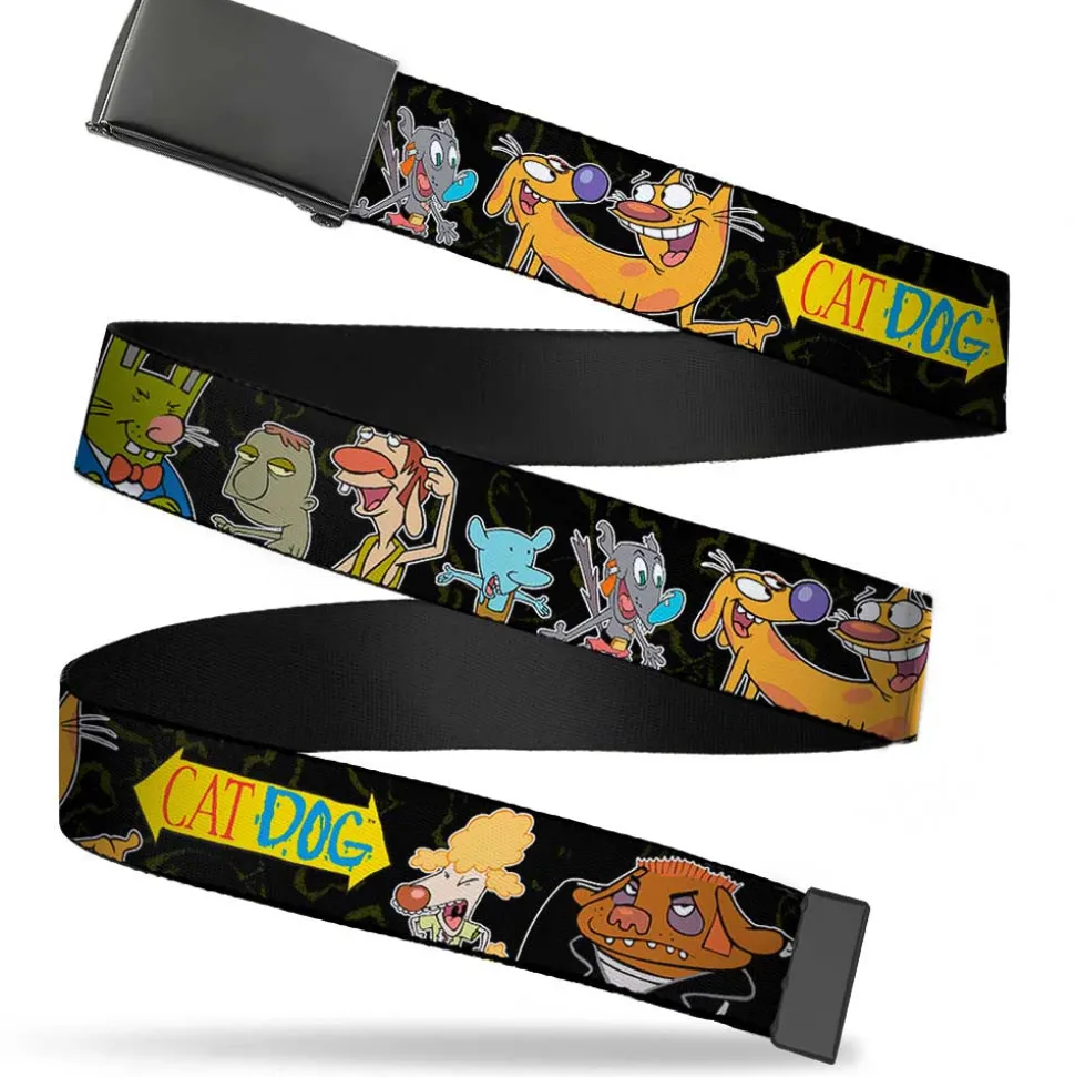 Black Buckle Web Belt - CATDOG Group Pose Black/Multi Color Webbing