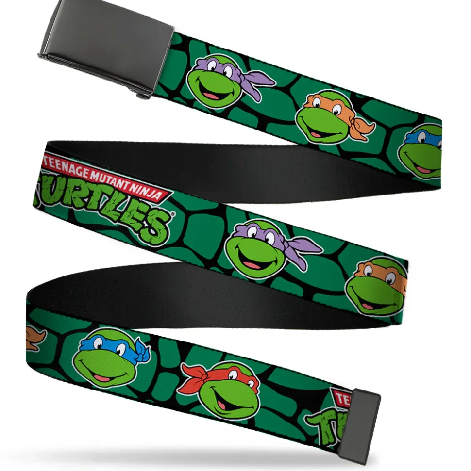 Black Buckle Web Belt – Classic TEENAGE MUTANT NINJA TURTLES Turtle Faces Black/Green Turtle Shell Webbing