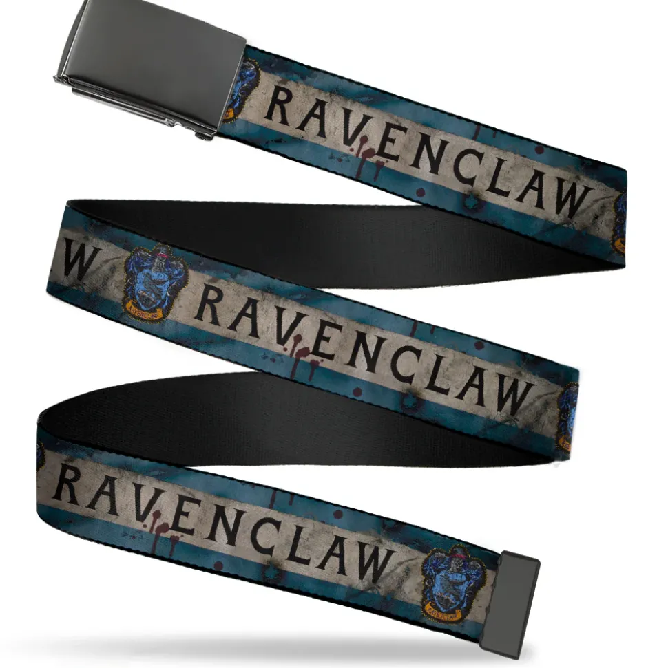 Black Buckle Web Belt – RAVENCLAW Crest/Banner Weathered Blue/Gray Webbing