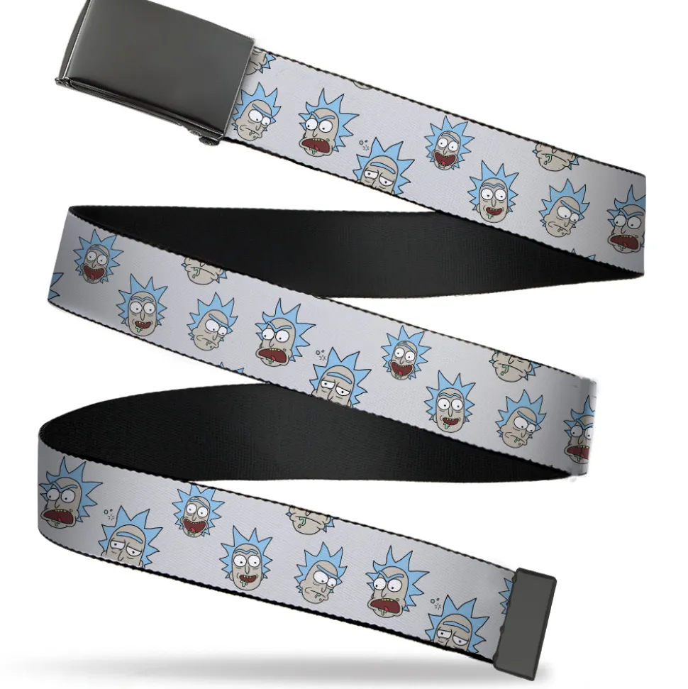 Black Buckle Web Belt – Rick & Morty Rick Expressions Scattered Gray Webbing