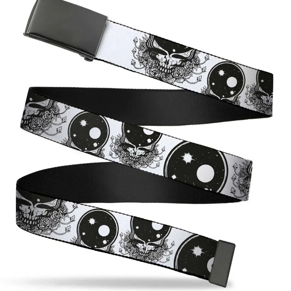 Black Buckle Web Belt – Space Your Face White/Black Webbing