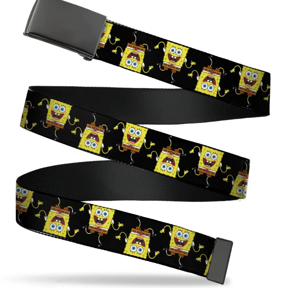 Black Buckle Web Belt – SpongeBob Wavy Arm Pose Flip Black Webbing