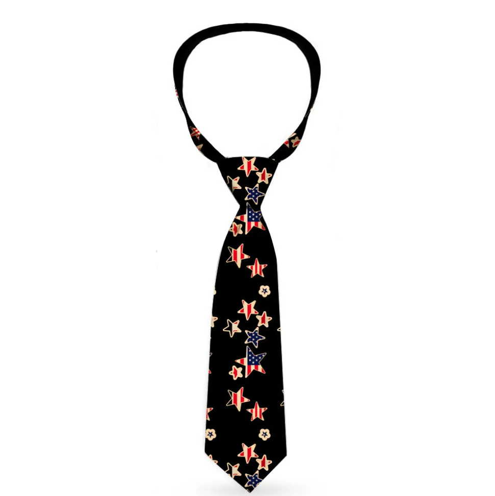 Buckle-Down Necktie - Americana Stars & Flags Black/Red/White/Blue