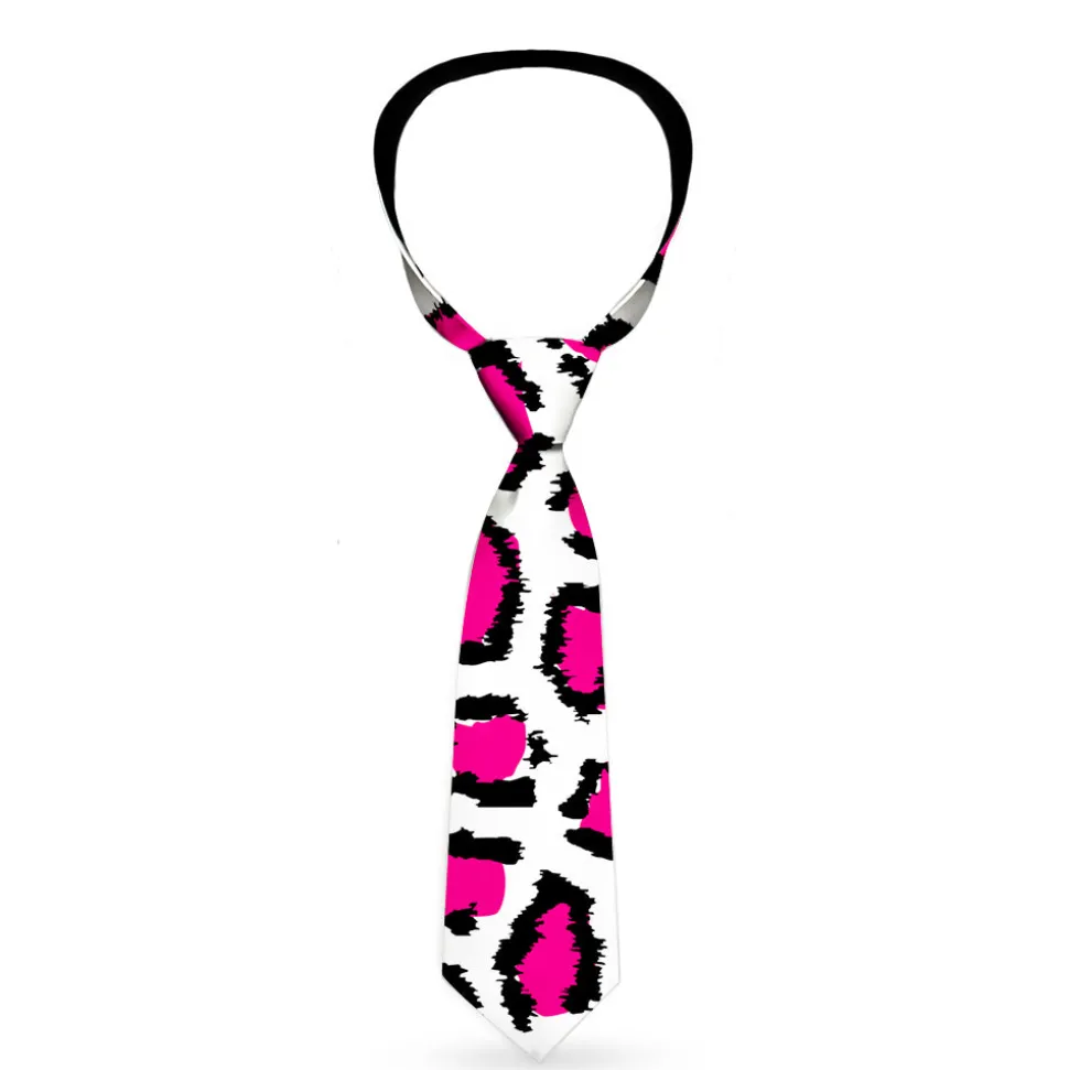 Buckle-Down Necktie - Leopard White/Fuchsia