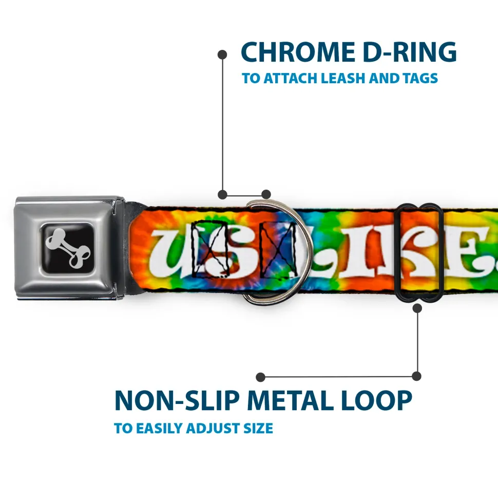 Your dog will be the talk of the town when people notice they’re wearing this awesome SeatBelt Dog Collar! Made from high-density polyester and durable steel components, this collar is built to last. It features beautiful vibrant artwork. The buckle is a miniature authentic SeatBelt Buckle, so you press the center button to release the clasp. This product is Made in USA by Buckle-Down Inc. and officially licensed by Buckle-Down.