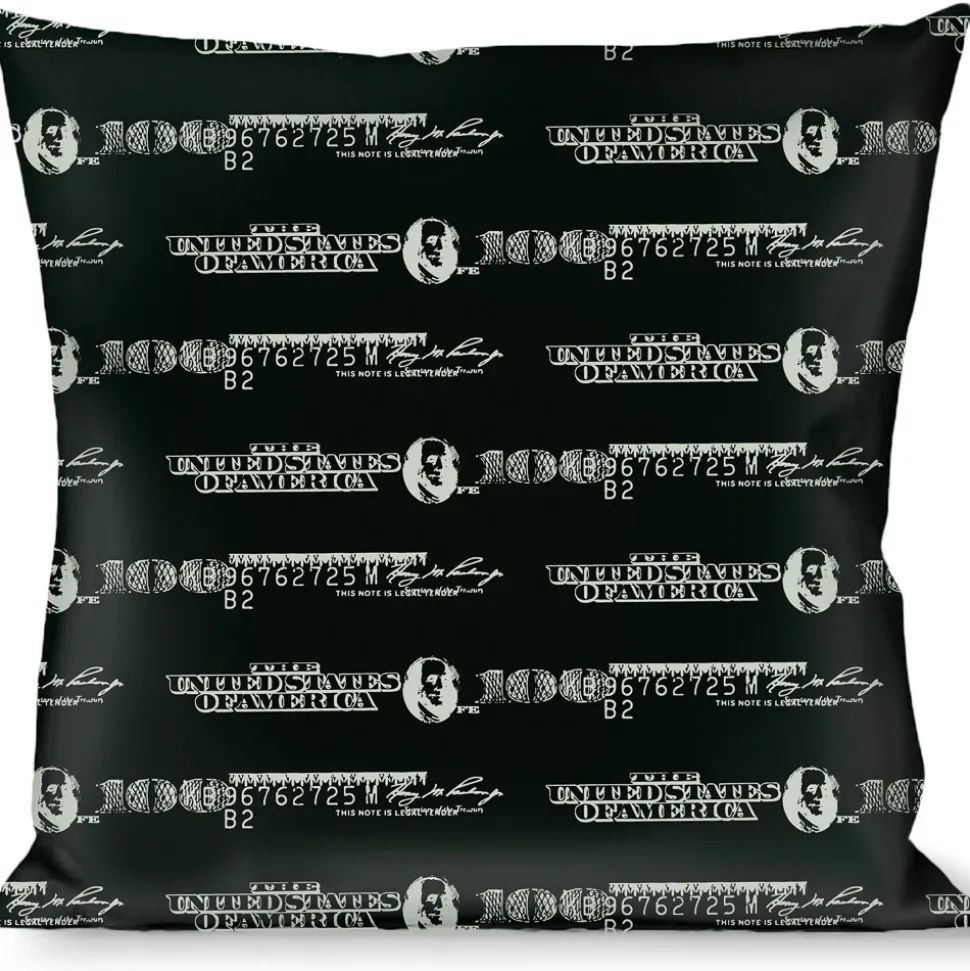 Buckle-Down Throw Pillow - Americana One Hundred Dollar Bill Elements Black/Gray