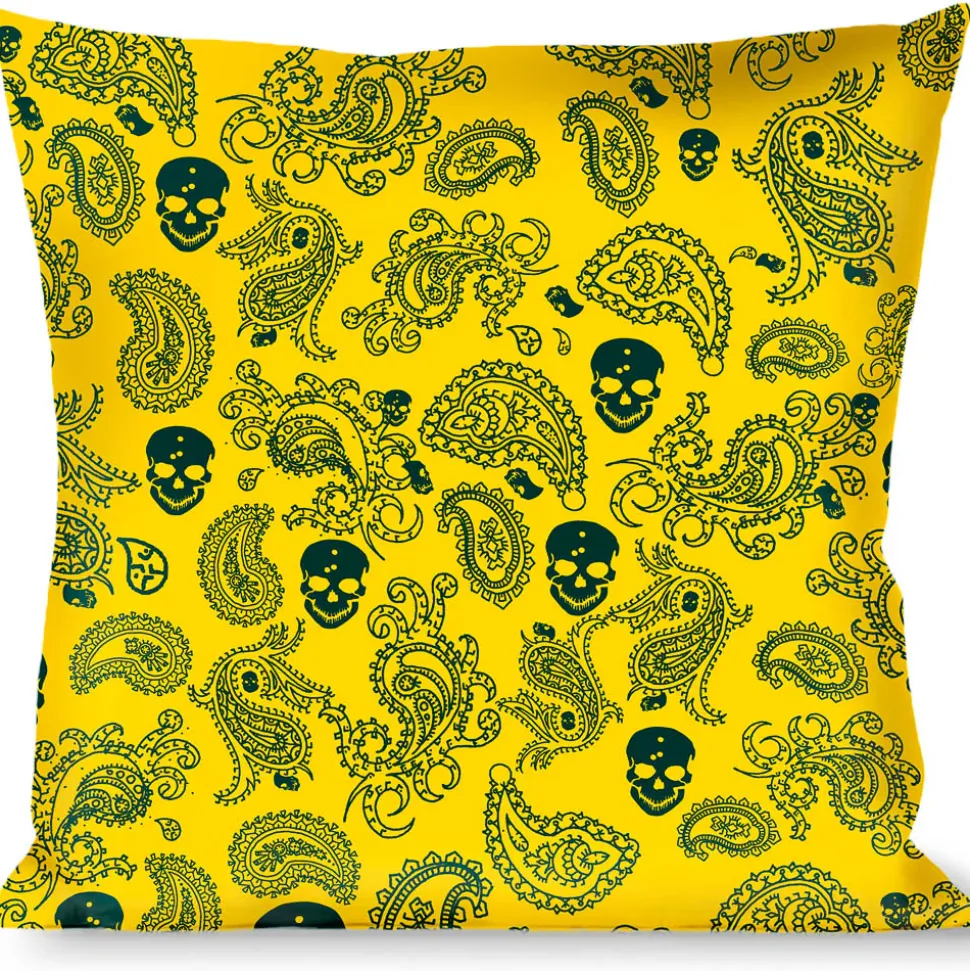 Buckle-Down Throw Pillow - Bandana/Skulls Gold/Green