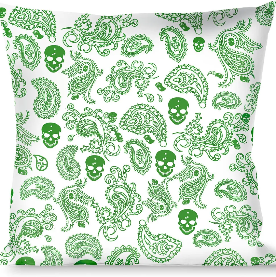 Buckle-Down Throw Pillow – Bandana/Skulls White/Irish Green