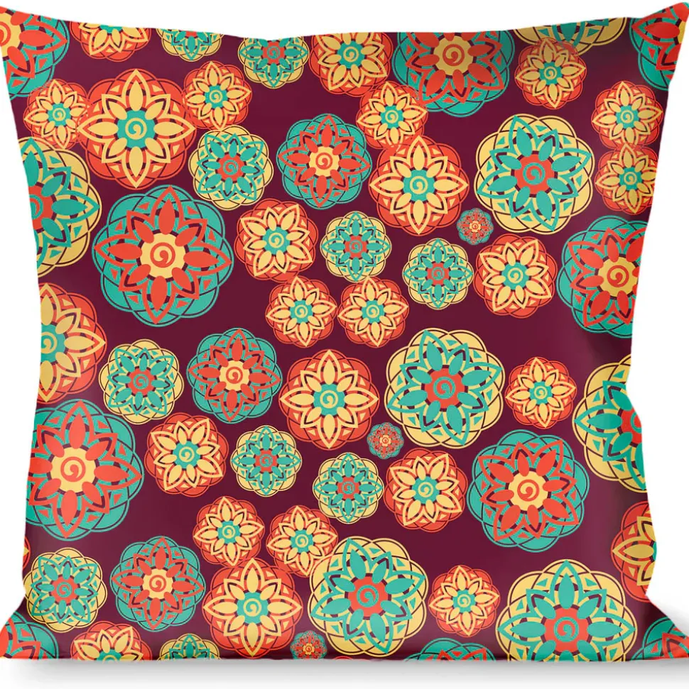 Buckle-Down Throw Pillow - Boho Mandala Burgundy/Yellow/Turquoise/Orange