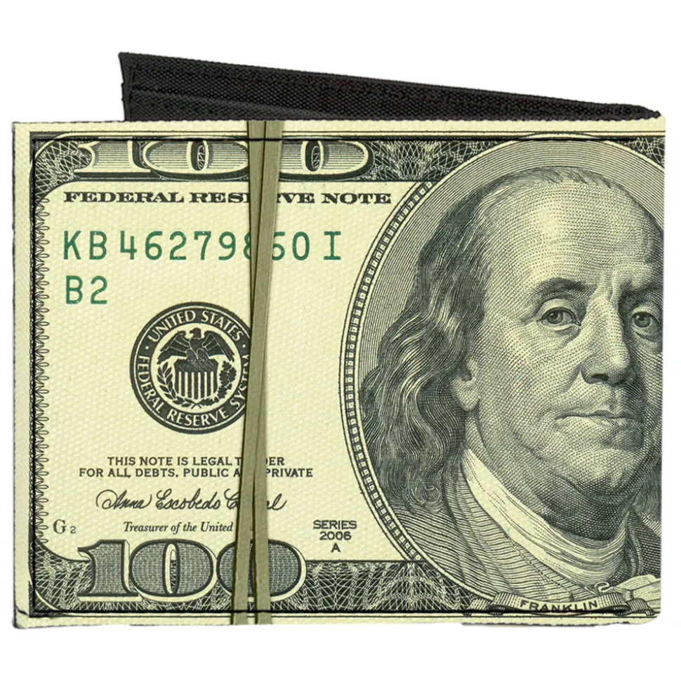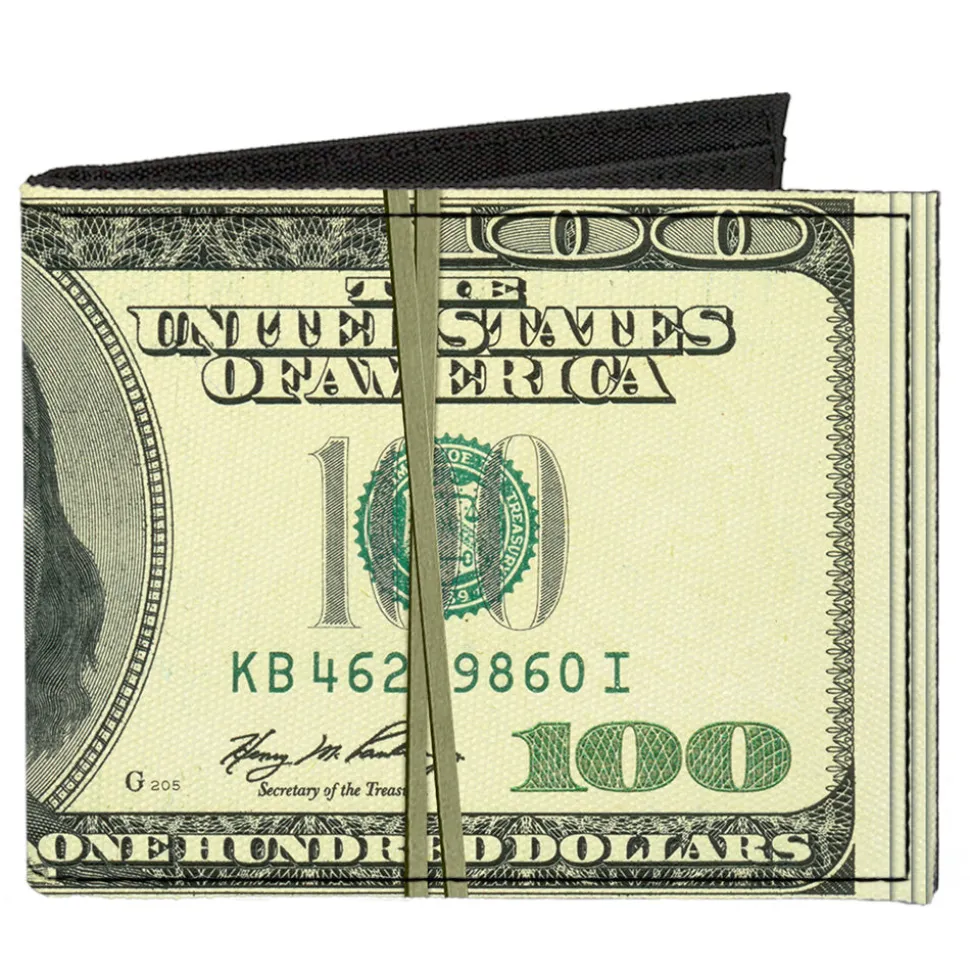 Canvas Bi-Fold Wallet – 100 Dollar Bill Series 2006 w Rubberband