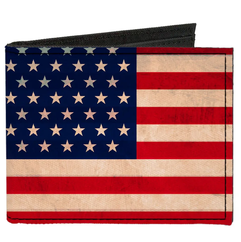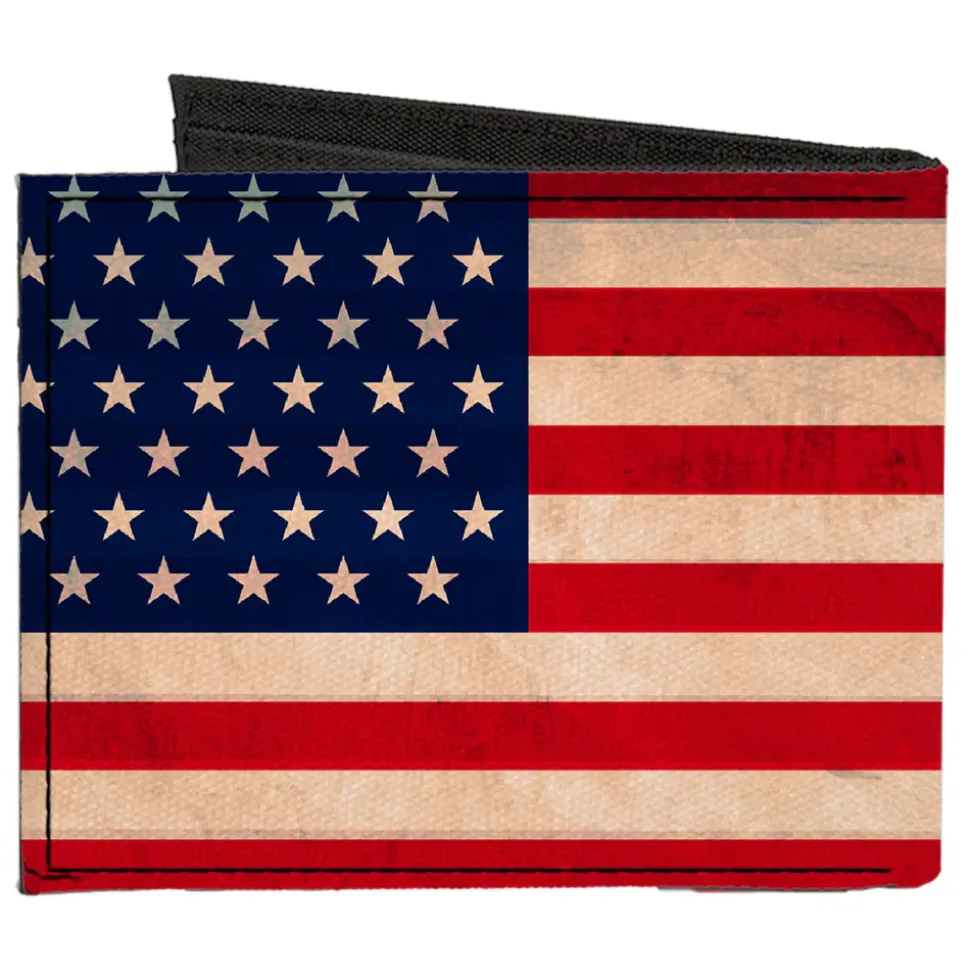 Canvas Bi-Fold Wallet – American Flag Weathered Color