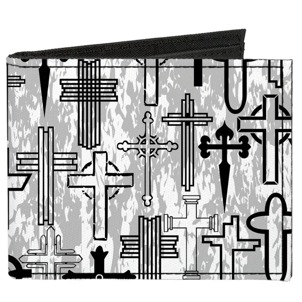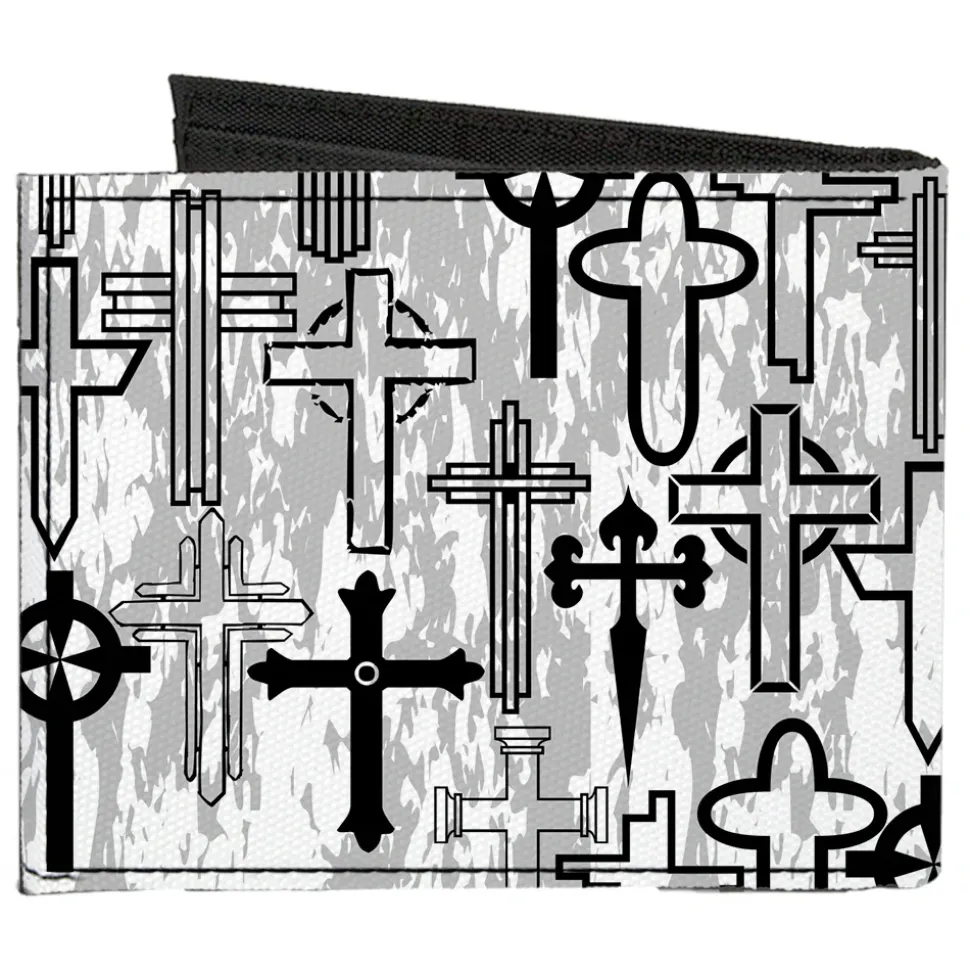 Canvas Bi-Fold Wallet – Crosses Assorted Distressed White Black