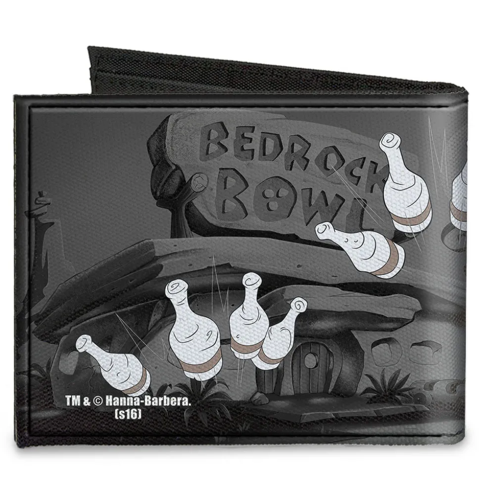 This men’s bi-fold wallet is made from high-density woven canvas. It measures 4.0″x3.5″x0.5″, and features the standard billfold, 5 card slots, and windowed ID holder. The logos are applied using advanced printing technologies, so the wallet will still look good after years of hard use. This product is Made in the USA by Buckle-Down, Inc. and Officially Licensed by The Flintstones.