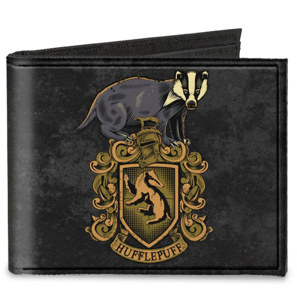 Canvas Bi-Fold Wallet – HUFFLEPUFF Badger Crest + DEDICATION PATIENCE LOYALTY Banner Grays Golds