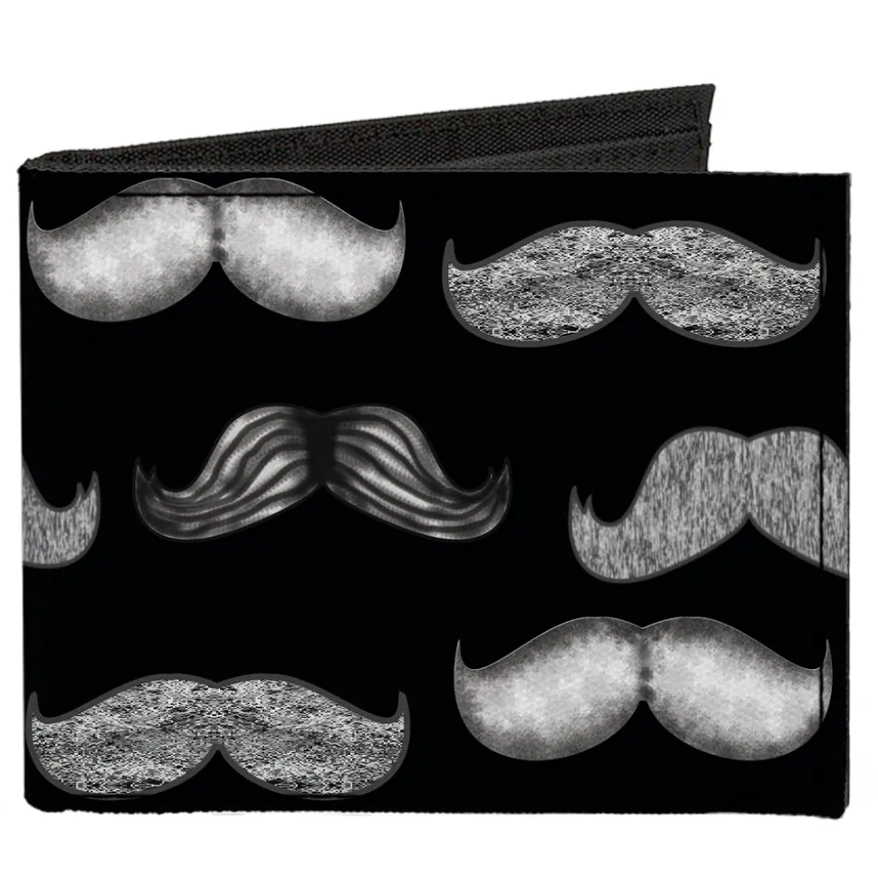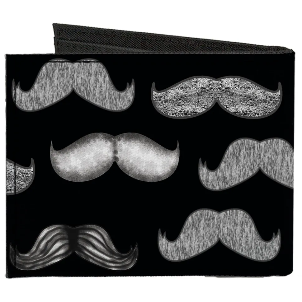 Canvas Bi-Fold Wallet – Mustache Sketch Black White