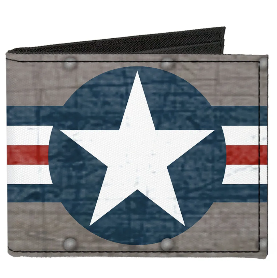 Canvas Bi-Fold Wallet - Pin Up Girl Poses CLOSE-UP Star & Stripes Gray Blue White Red