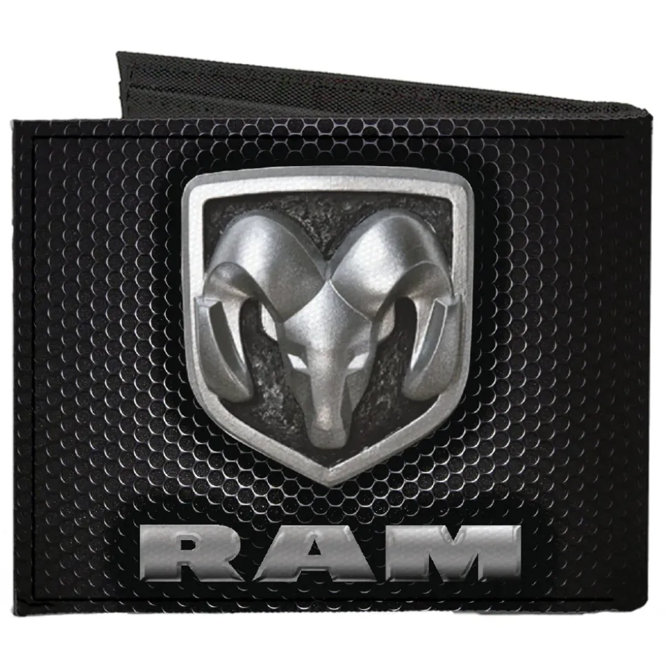 This men’s bi-fold wallet is made from high-density woven canvas. It measures 4.0″x3.5″x0.5″, and features the standard billfold, 5 card slots, and windowed ID holder. The logos are applied using advanced printing technologies, so the wallet will still look good after years of hard use. This product is Made in the USA by Buckle-Down, Inc. and Officially Licensed by Ram.