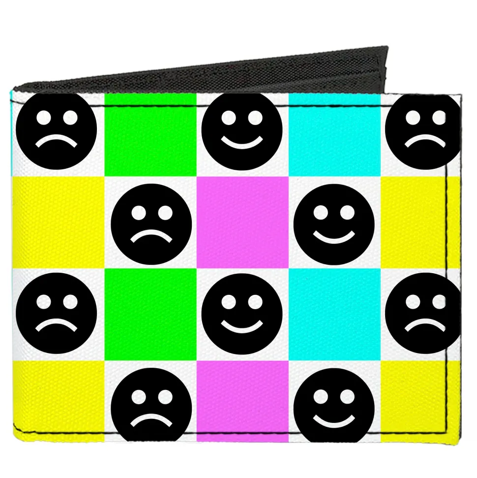 Canvas Bi-Fold Wallet – Smiley Sad Face Checker Multi Color/White