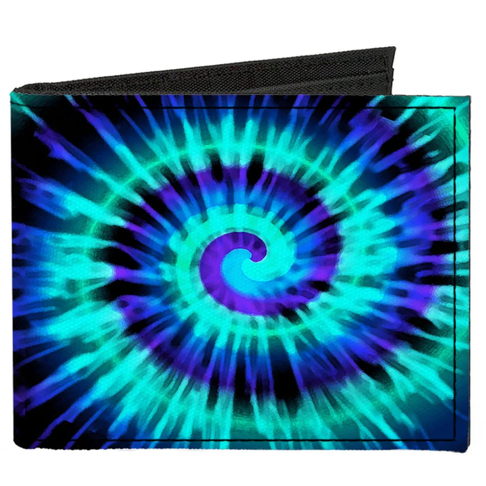 Canvas Bi-Fold Wallet – Tie Dye Spiral Blues Purples