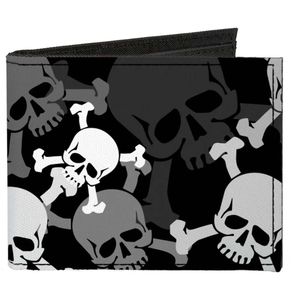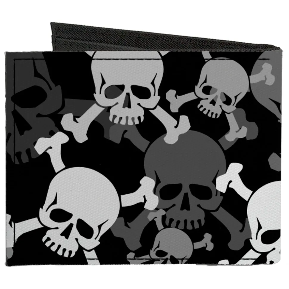 Canvas Bi-Fold Wallet – Top Skulls Stacked Black Gray White