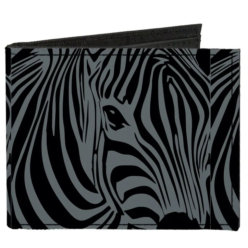 Canvas Bi-Fold Wallet – Zebra Head Black Gray