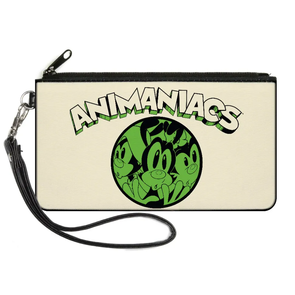 This is your classic “clutch” wallet, great for when you don’t want to carry around a bulky purse. It’s made from high-density woven nylon, and measures 8.0″x5.0″, with 4 card slots, a billfold, and a pouch. It zips smoothly shut, and has a detachable wrist strap for easy carrying. This product is Made in USA by Buckle-Down, Inc. and Officially Licensed by Animaniacs.