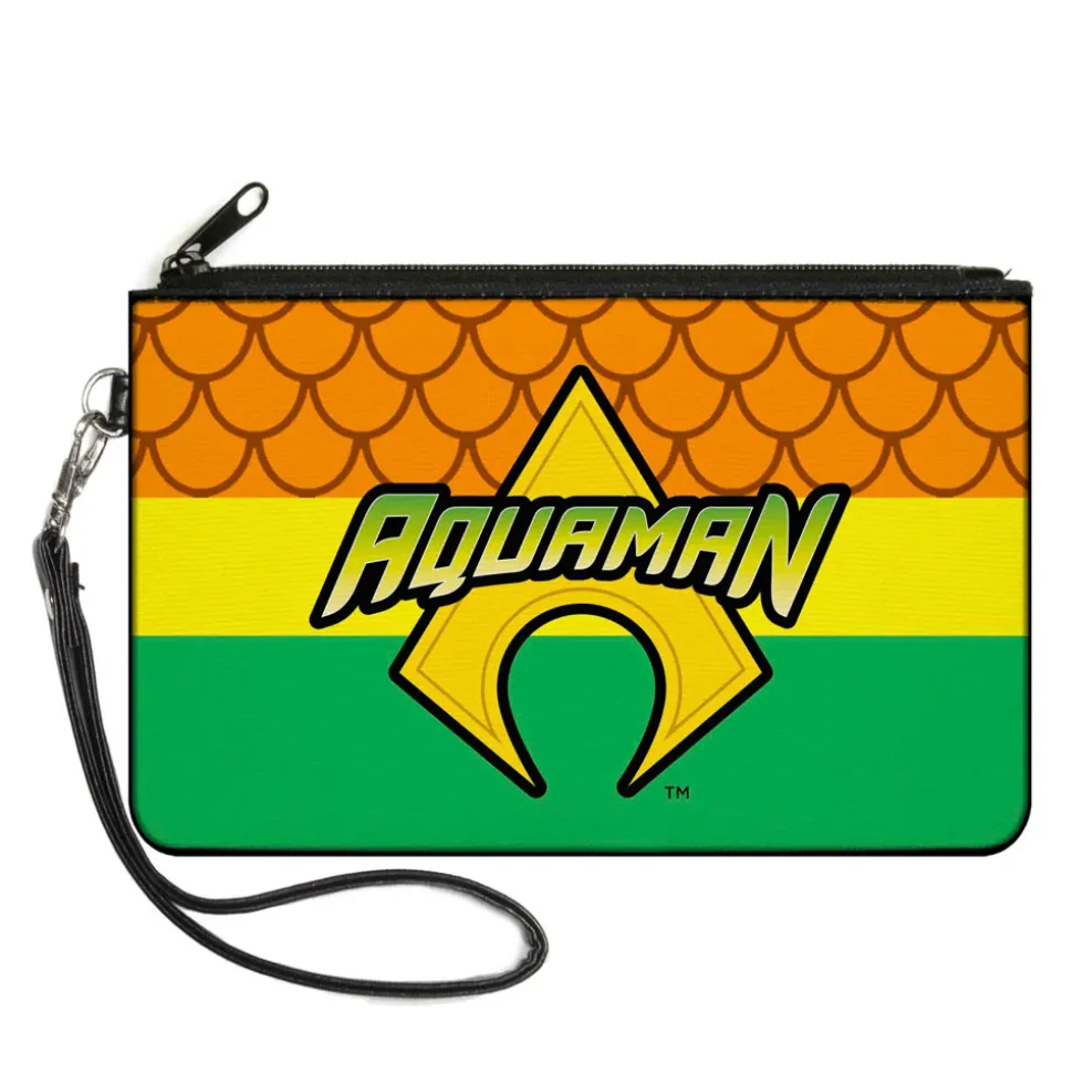 Canvas Zipper Wallet - LARGE - AQUAMAN Logo3 Scales Stripe Orange Yellow Green