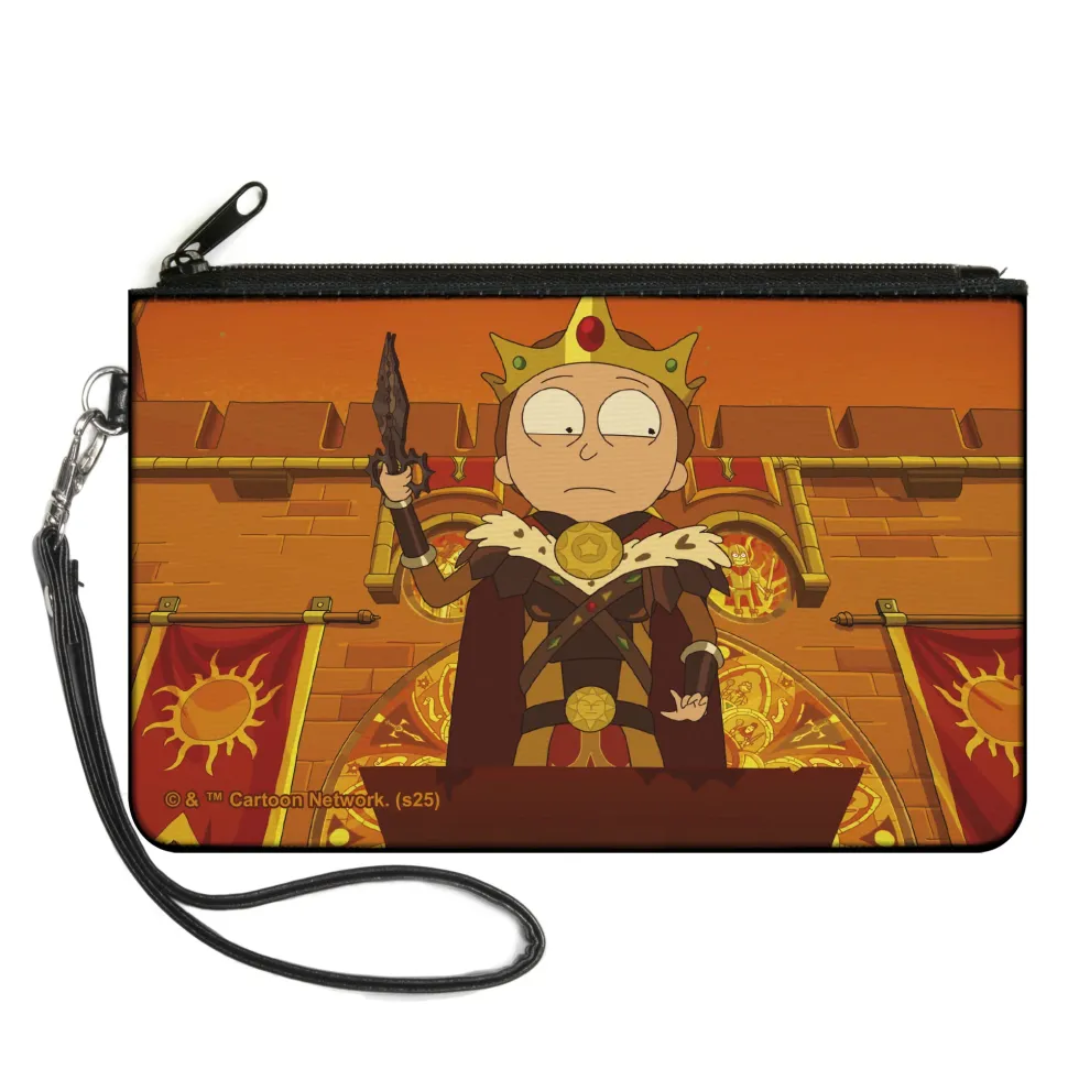 This is your classic “clutch” wallet, great for when you don’t want to carry around a bulky purse. It’s made from high-density woven nylon, and measures 8.0″x5.0″, with 4 card slots, a billfold, and a pouch. It zips smoothly shut, and has a detachable wrist strap for easy carrying. This product is assembled in the USA by Buckle-Down, Inc. and Officially Licensed by Rick and Morty.