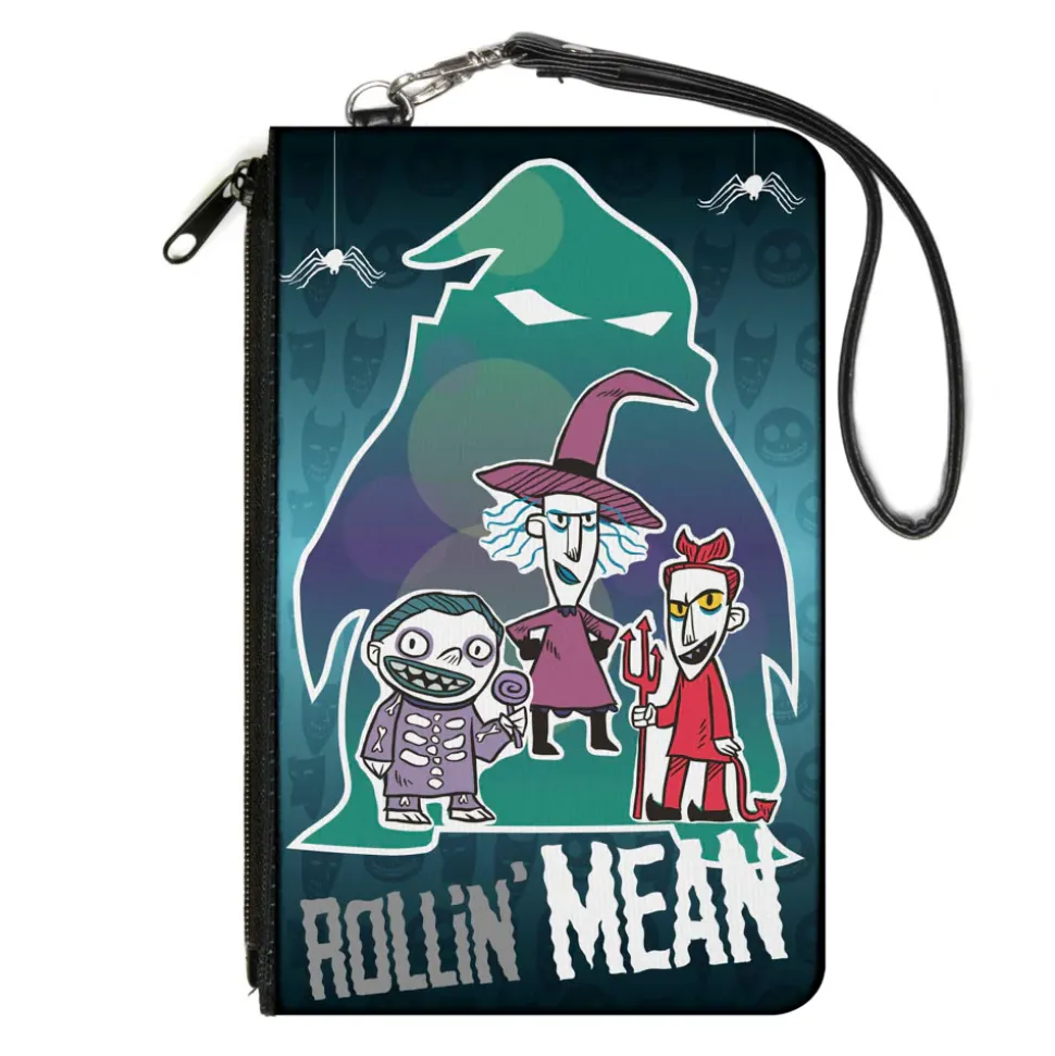 This is your classic “clutch” wallet, great for when you don’t want to carry around a bulky purse. It’s made from high-density woven nylon, and measures 8.0″x5.0″, with 4 card slots, a billfold, and a pouch. It zips smoothly shut, and has a detachable wrist strap for easy carrying. This product is Made in USA by Buckle-Down, Inc. and Officially Licensed by Disney.