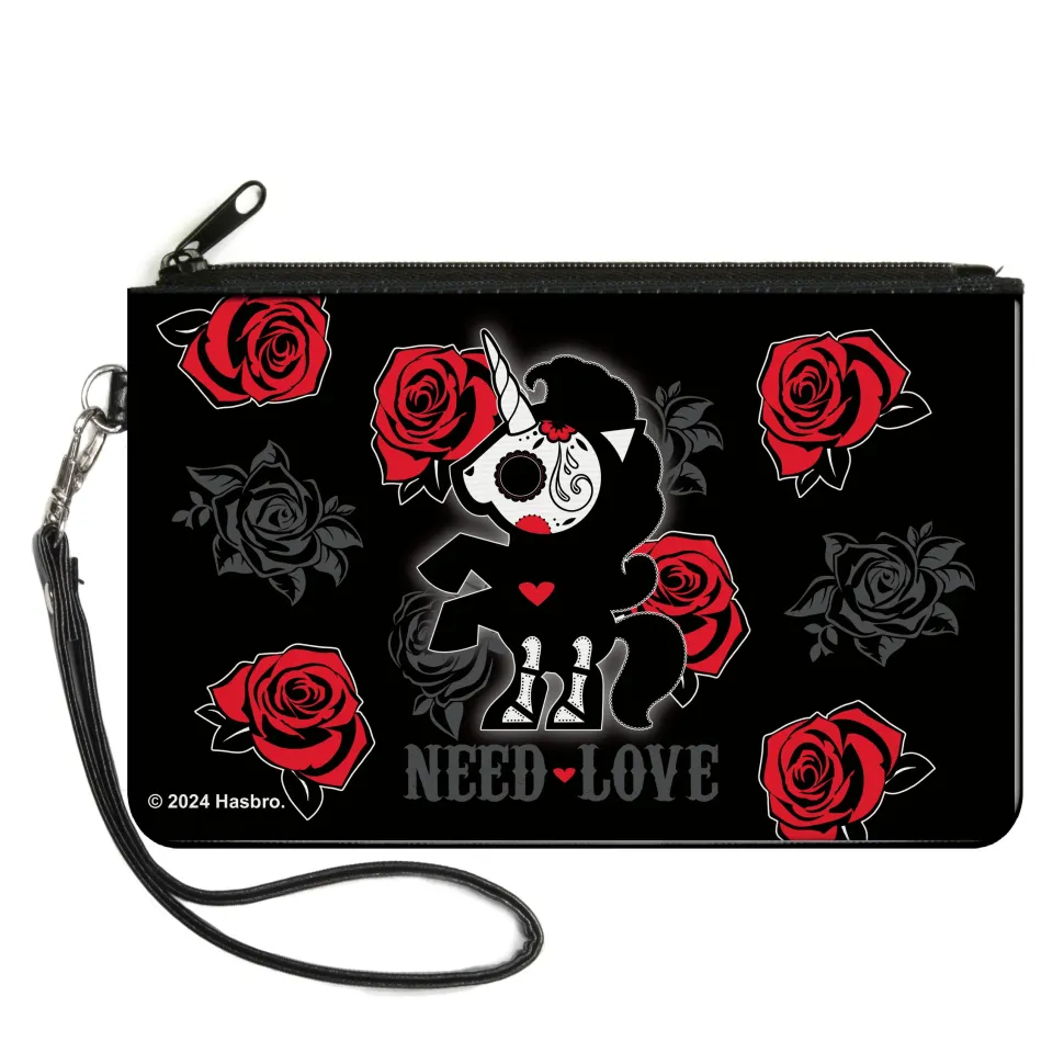 Canvas Zipper Wallet – LARGE – Skelanimals Bonita the Unicorn NEED LOVE Pose Black/Gray/Red/White