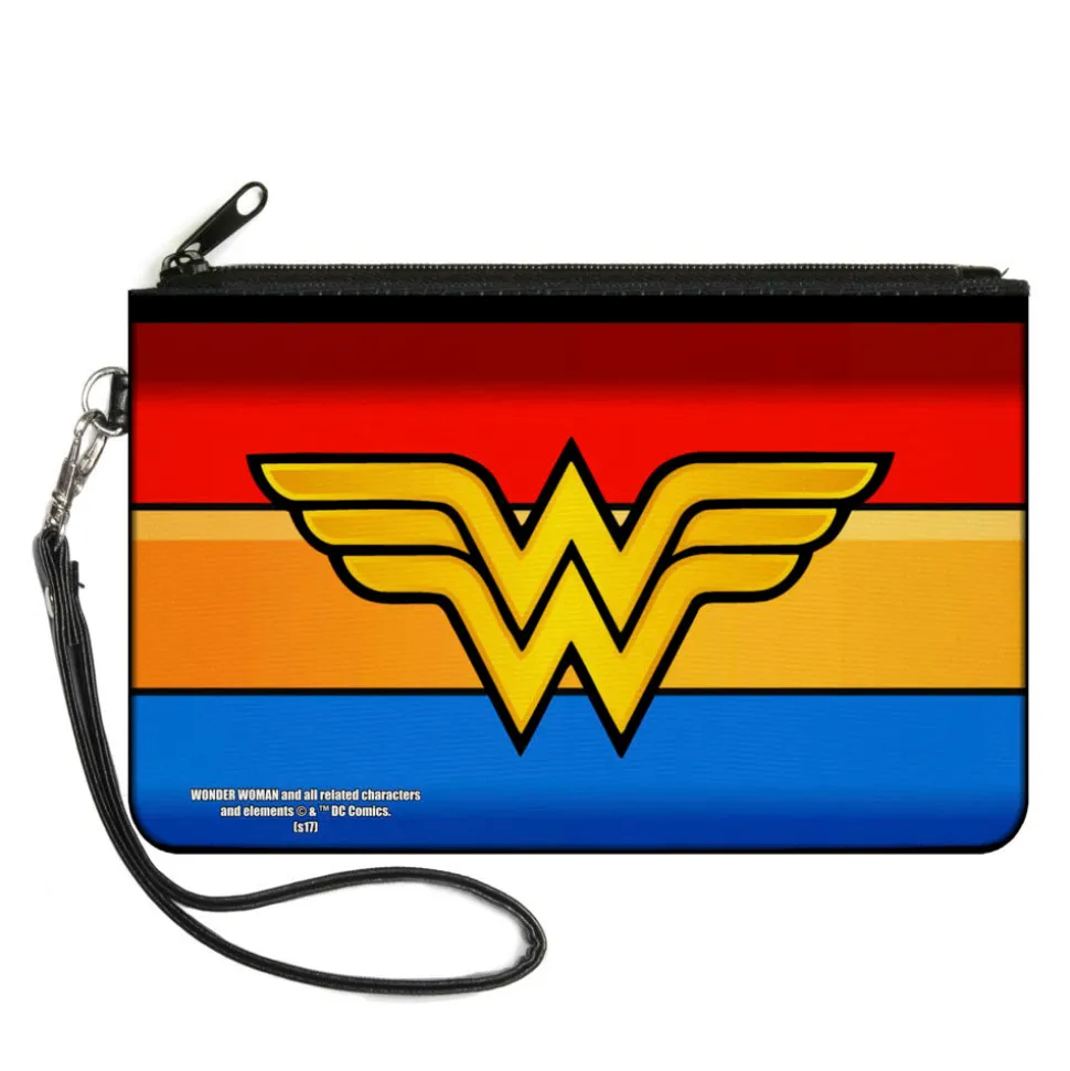 Canvas Zipper Wallet - LARGE - Wonder Woman Logo Stripe Red Yellows Blue