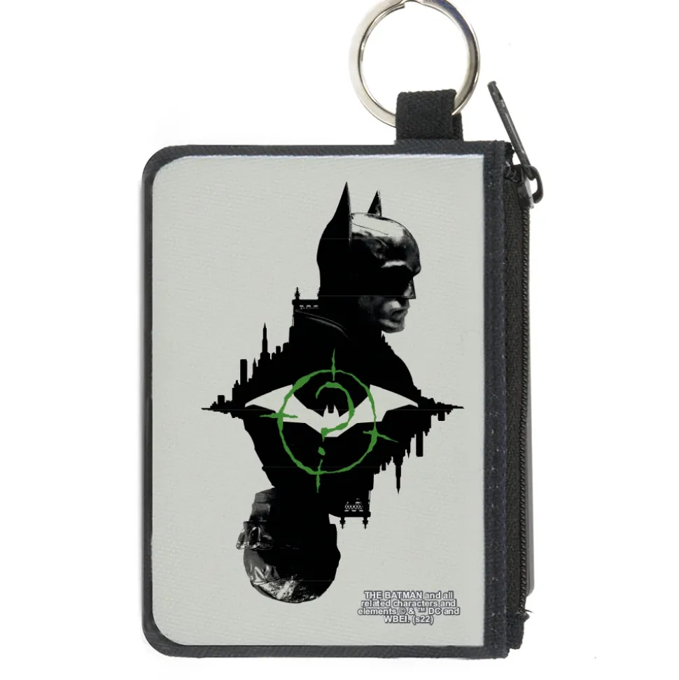 Canvas Zipper Wallet - MINI X-SMALL - The Batman Movie Batman and Riddler Poses and Logos Cityscape Grays Black Green