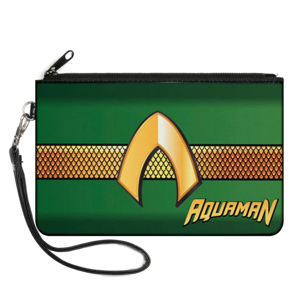 Canvas Zipper Wallet – SMALL – AQUAMAN Classic Icon Scales Stripe Green Golds