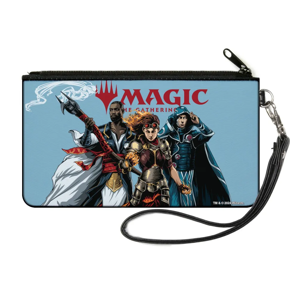 This is your classic “clutch” wallet, great for when you don’t want to carry around a bulky purse. It’s made from high-density woven polyester, and measures 6.5″x3.5″, with one pouch, a smooth zipper, and a detachable wrist strap for easy carrying. This product is assembled in the USA by Buckle-Down, Inc. and Officially Licensed by Wizards of the Coast.