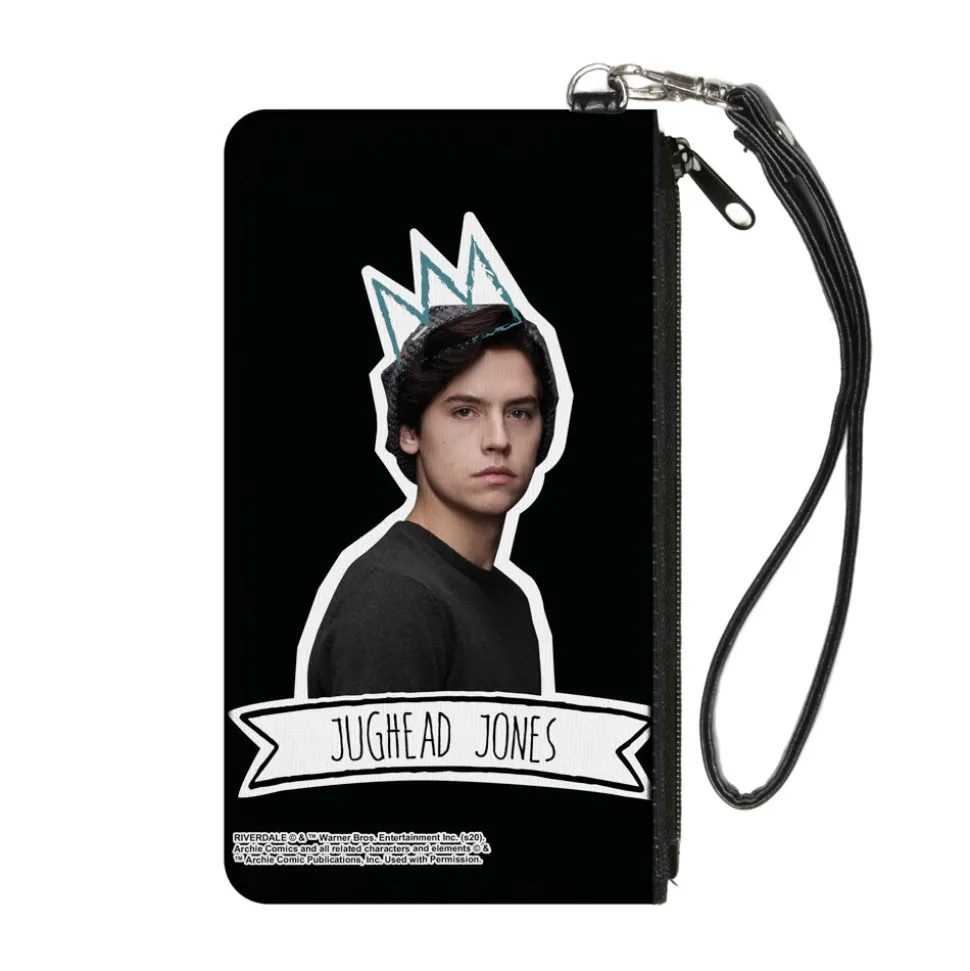 This is your classic “clutch” wallet, great for when you don’t want to carry around a bulky purse. It’s made from high-density woven polyester, and measures 6.5″x3.5″, with one pouch, a smooth zipper, and a detachable wrist strap for easy carrying. This product is Made in USA by Buckle-Down, Inc. and Officially Licensed by Riverdale.