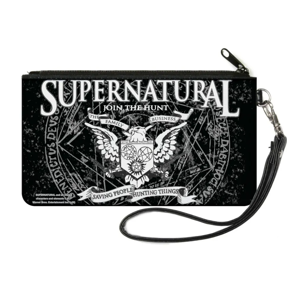 Canvas Zipper Wallet – SMALL – SUPERNATURAL WINCHSTER BROTHERS Eagle Crest Black Gray White
