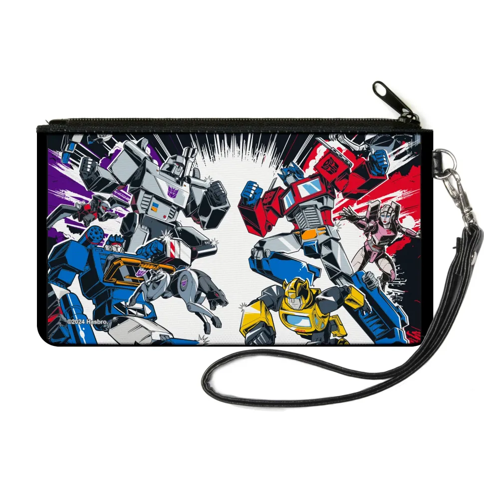 This is your classic “clutch” wallet, great for when you don’t want to carry around a bulky purse. It’s made from high-density woven polyester, and measures 6.5″x3.5″, with one pouch, a smooth zipper, and a detachable wrist strap for easy carrying. This product is assembled in the USA by Buckle-Down, Inc. and Officially Licensed by Hasbro.