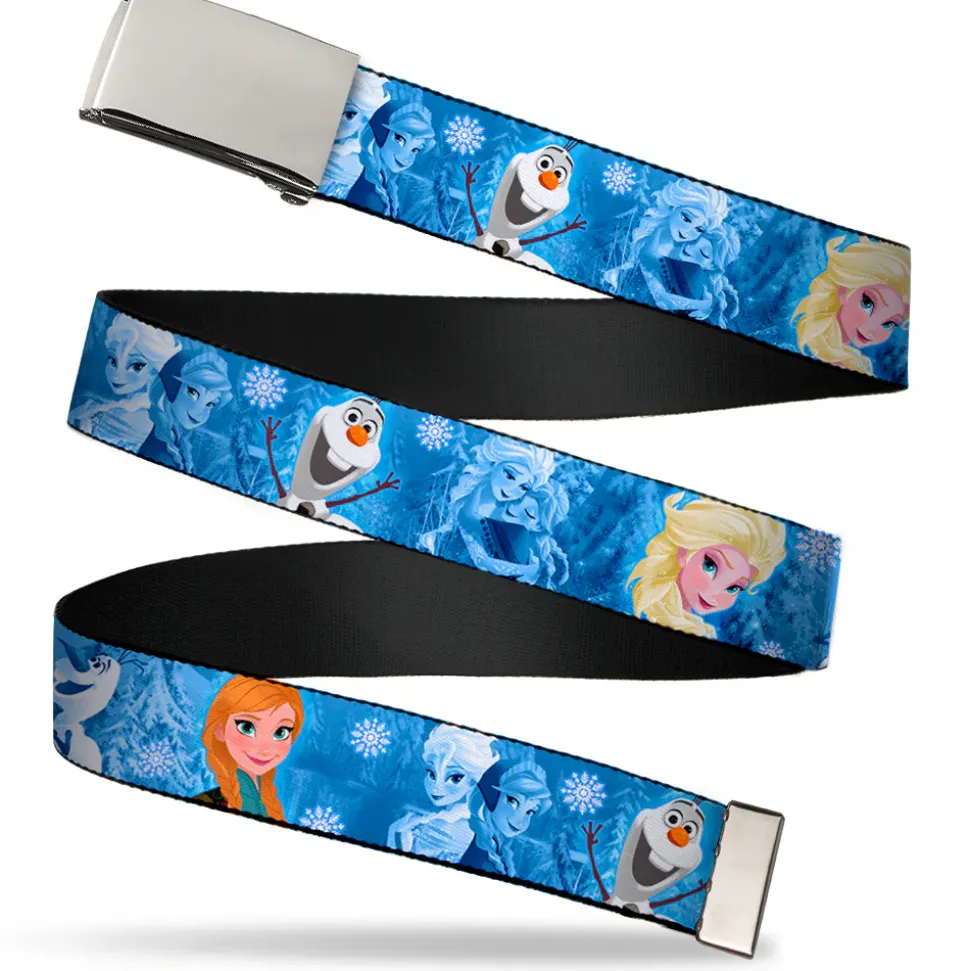 Chrome Buckle Web Belt – Frozen Character Poses Blues Webbing
