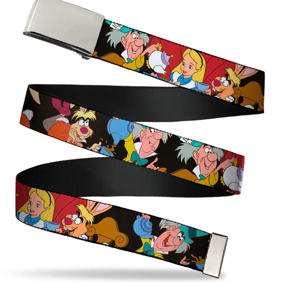 Chrome Buckle Web Belt - Mad Hatter's Tea Party Poses Webbing